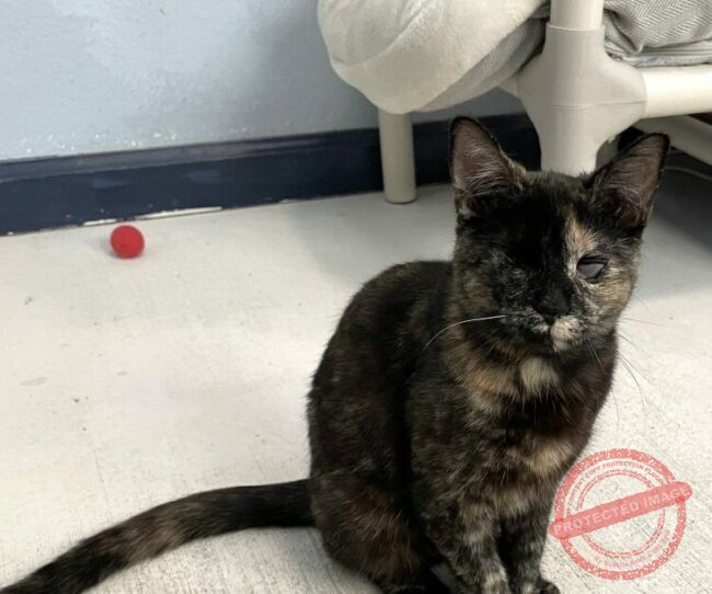 Meow! My name is Lumena! I am a cute female DSH Tortoiseshell kitten born approximately 10/20/23. I am playful and loving and a special kitty. I love tossing around toy mice and stuffed toys, and running around and climbing like all happy young kitties. I enjoy being held and pet too. My limited vision may…
