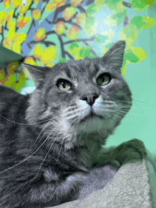 Hi, I’m Wild Tiger! A short haired grey tabby male, born approximately 2/06/2018. I’ve had quite the journey to get here. I lived outside for most of my life, and when I moved with the family to a new home, I really missed my previous neighborhood. I traveled 12 miles to find my way back to that old preferred neighborhood and showed up at the neighbor’s house! After some tough times and a few big fights with other cats, they took me to the vet for care and discovered that I am FELV positive and I need to be an indoor-only kitty now.