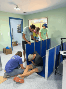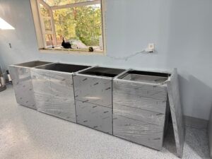 One important detail to all of the excitement of the CCU being open was our plan to move the sanctuary kitties to the CCU ‘Cattic” area while the sanctuary received a much-needed refresh. The sanctuary building has not had a refresh in 15 years. During all of those years Wild Blue Cats touched the lives of 13,000 kitties. Many of those 13,000 precious lives have used the sanctuary in some capacity. Sometimes, just medical needs, but other times it was a kitty’s residence for anywhere from 2 weeks to 3 years.